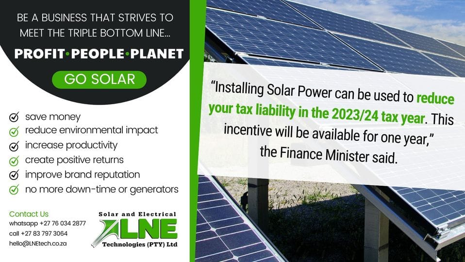 TAKE ADVANTAGE NOW – Get solar power installed at your home or business – email your details to Hello@LNEtech.co.za